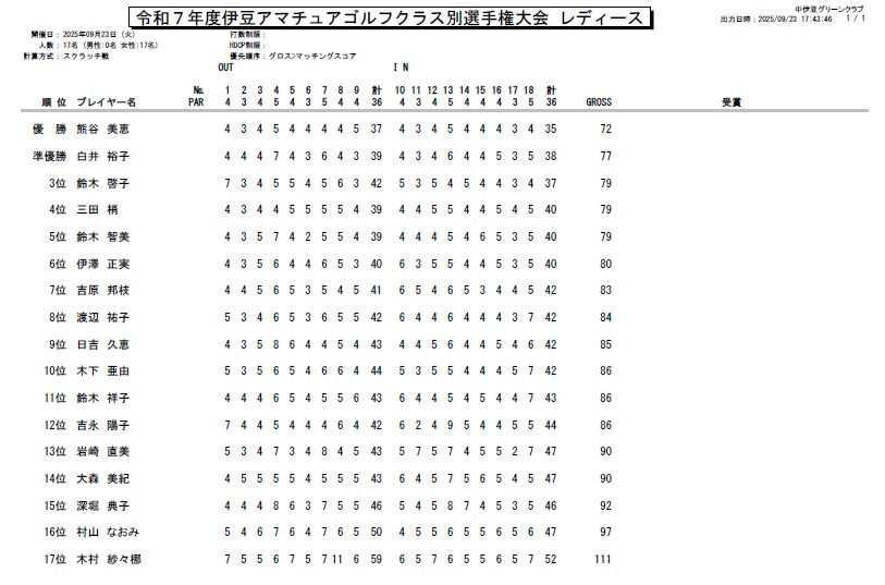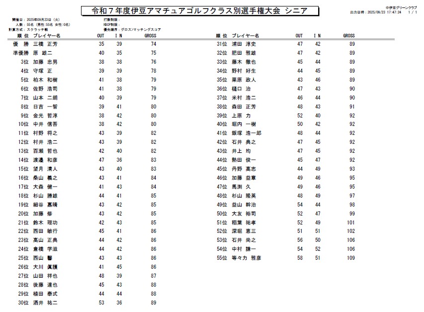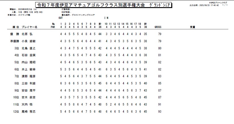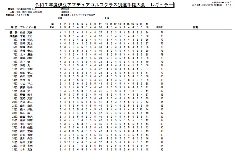9/23開催☆伊豆アマチュアゴルフ選手権大会 結果発表!